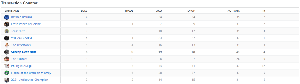 Dan’s team is dropping like flies and and is plummeting Dan back to his home at the bottom of the standings.