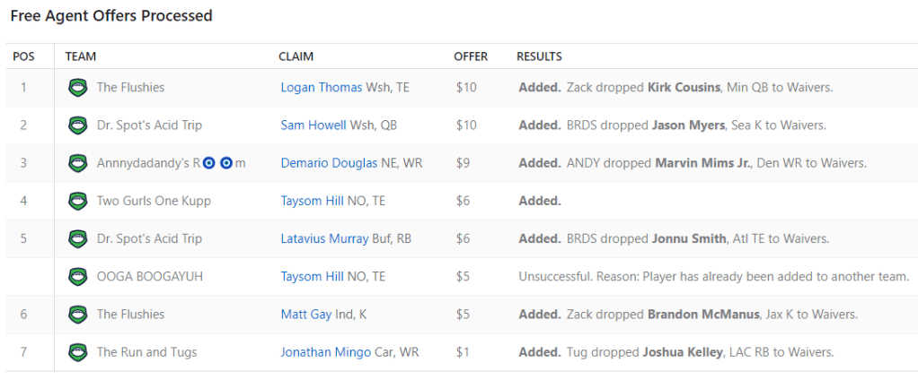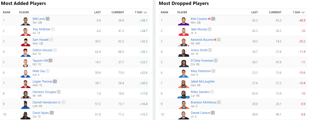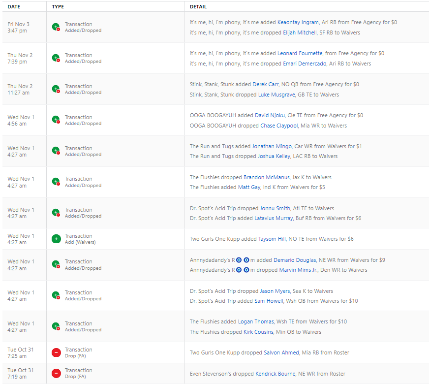 With this being the case though, don’t be surprised if trading comes screeching to a halt. Now normally, trading is tough because by this point nobody in #ThisLeague trusts anybody. Now, you add on the fact that literally everybody’s starting second flex this week is objectively hilarious, and it looks like everyone is keen to just sit back and hope for the best.